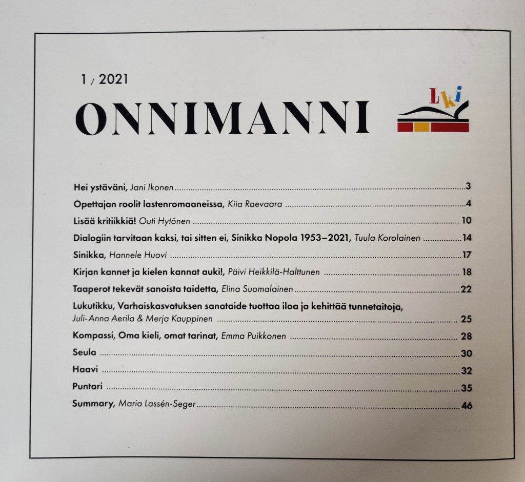 Lisään tähän alle Onnimannin teemanumeron sisällysluettelon ja sanataidetta ja tarinallisuutta koskevia tekstejä lukuintoa ja identiteetin rakentelua sytyttämään.
