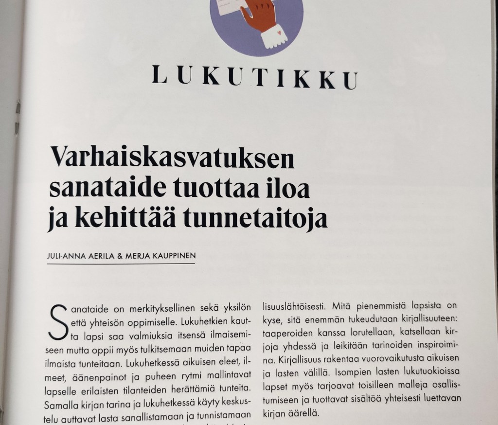 - Lukutikku-palsta antaa opettajille ja kasvattajille vinkkejä kirjallisuuden käyttöön opetuksessa