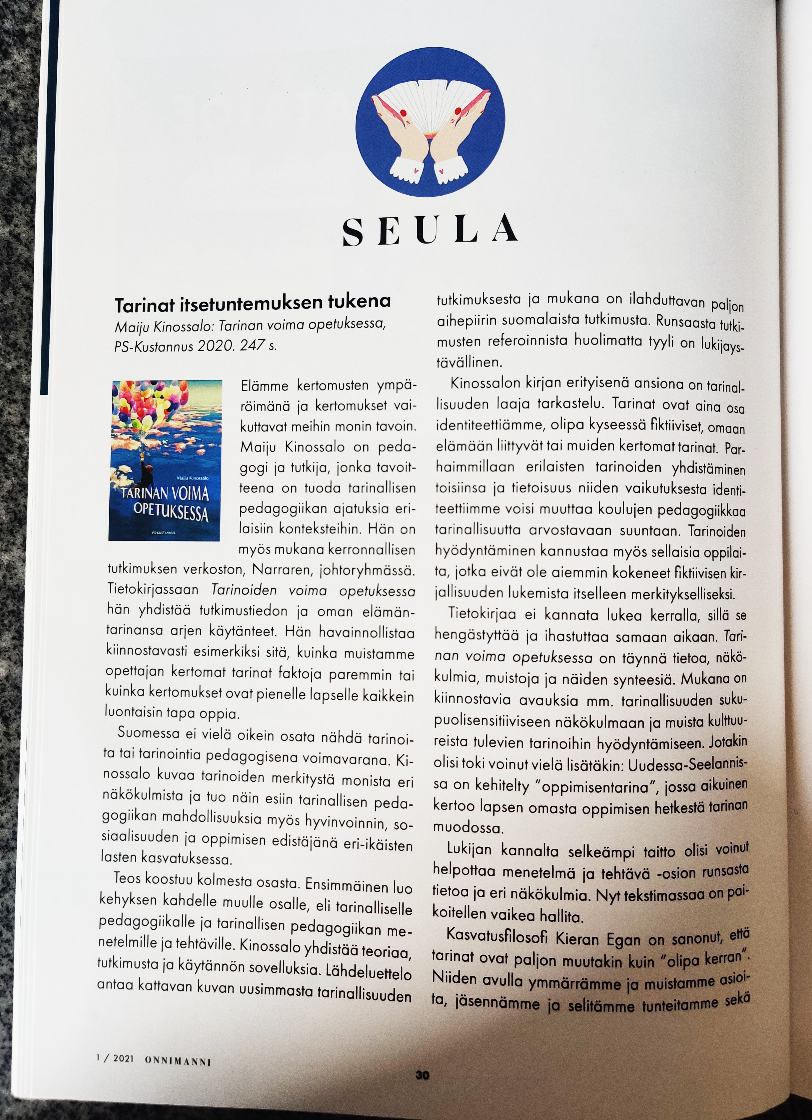 Tarinan voima opetuksessa -kirja Onnimannin Seulassa